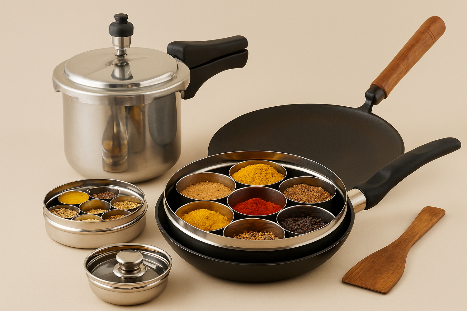 Cook like a pro with authentic Indian cookware and kitchen tools – from non-stick pans, pressure cookers, and tawas to masala dabbas and spice grinders. Perfect for preparing your favorite curries, dals, and biryanis with ease and flavor.